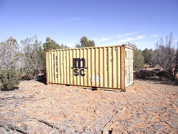 There is a 20 ft standard shipping container with two wood burning stoves on the property.