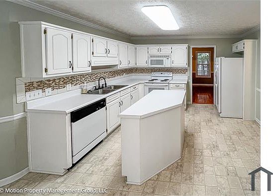 Executive suite upstairsFresh exterior paintTile backsplashWhite cabinetsAmple storage