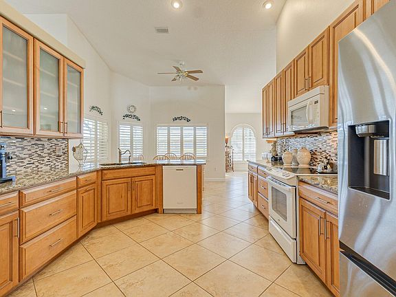 You will be delighted with this waterfront home from the moment you step in. Enjoy views over the pool and lake from most rooms or from your NEWLY screened in Porch! Home boasts 3 car garage, formal living, dining, family, and RENOVATED gourmet kitchen with breakfast nook, brand NEW SS refrigerator, granite counters, an abundance of cabinets and storage!; Beautiful Plantation Shutters throughout! Mature landscape, beautiful paved patio and side yard which could be used for extra parking, and lots of room for entertaining. Standing seam METAL Roof in 2021 and AC is 2023!