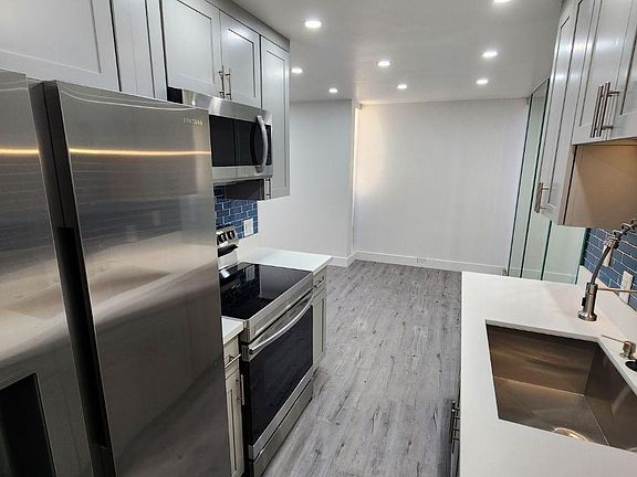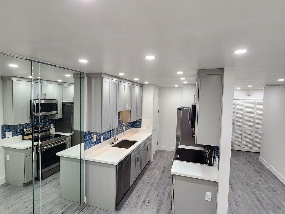 - brand new kitchen cabinets and new quartz countertops, new matching Samsung stainless steel dishwasher, refrigerator, electric stove and microwave.