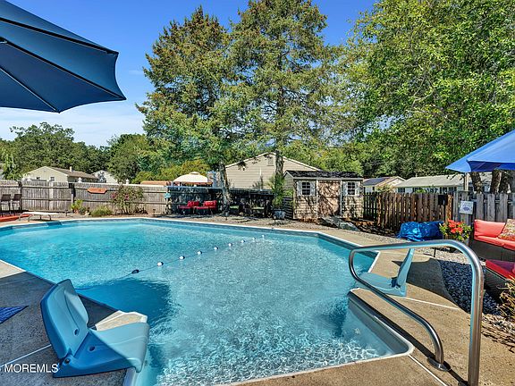 Charming Cape Retreat with Backyard Oasis in the desirable Herbertsville section of Brick. Just a stones throw from breathtaking beaches, delightful restaurants and convenient shopping. Step inside to find a warm inviting interior featuring hardwood floors and a spacious living room/ dining room combo perfect for large family gatherings. You'll also enjoy a separate family room and an eat- in kitchen equipped with recessed lighting, a stylish brick backsplash, quartz countertops and stainless steel appliances. The enclosed porch and beautiful front deck offer ideal spots to relax and unwind on summer or fall evenings. Outside, your private oasis awaits with a stunning inground pool, a tiki bar and surround sound all complimented by a new shed for your pool supplies
