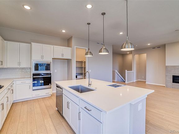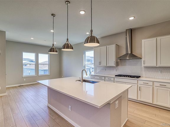 The Easton Ranch plan offers a stunning blend of modern elegance and functional design, perfect for those who love open-concept living. As you enter, you're welcomed into a spacious living area that seamlessly flows into a beautifully designed kitchen. The kitchen features a large central island, pristine white cabinets, and sophisticated Bianco Tiza quartz countertops, offering both style and plenty of workspace. Natural light fills the home, thanks to its east-west orientation, while a covered patio invites outdoor relaxation. Below, a vast unfinished basement with concrete floors presents countless possibilities for future finishing, whether you're envisioning an additional living space, home gym, or entertainment area. Situated in a quiet neighborhood near the trailhead to the upcoming Burns Regional Park, this home provides a serene escape with nature at your doorstep. Plus, the builder includes full landscaping, ensuring your outdoor space is as polished as the interior.