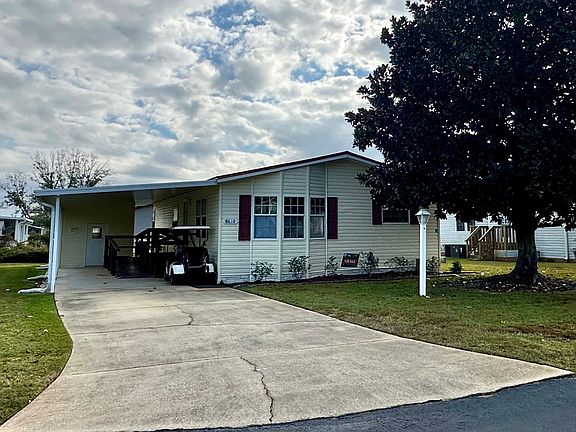 This 2-bedroom, 2-bath home is located in a gated, active 55+ community offering resort-style amenities. This home features new flooring in the living room, a screened porch perfect for relaxing, and an accessibility ramp for added convenience. The metal roof provides durability and peace of mind for years to come. Enjoy easy access to all the community has to offer, including pools, clubhouse, fitness center, social activities, and more. A golf cart is included, making it simple to explore the neighborhood and enjoy every amenity.