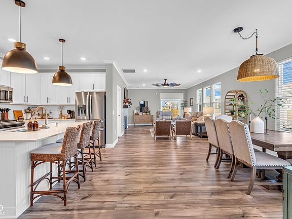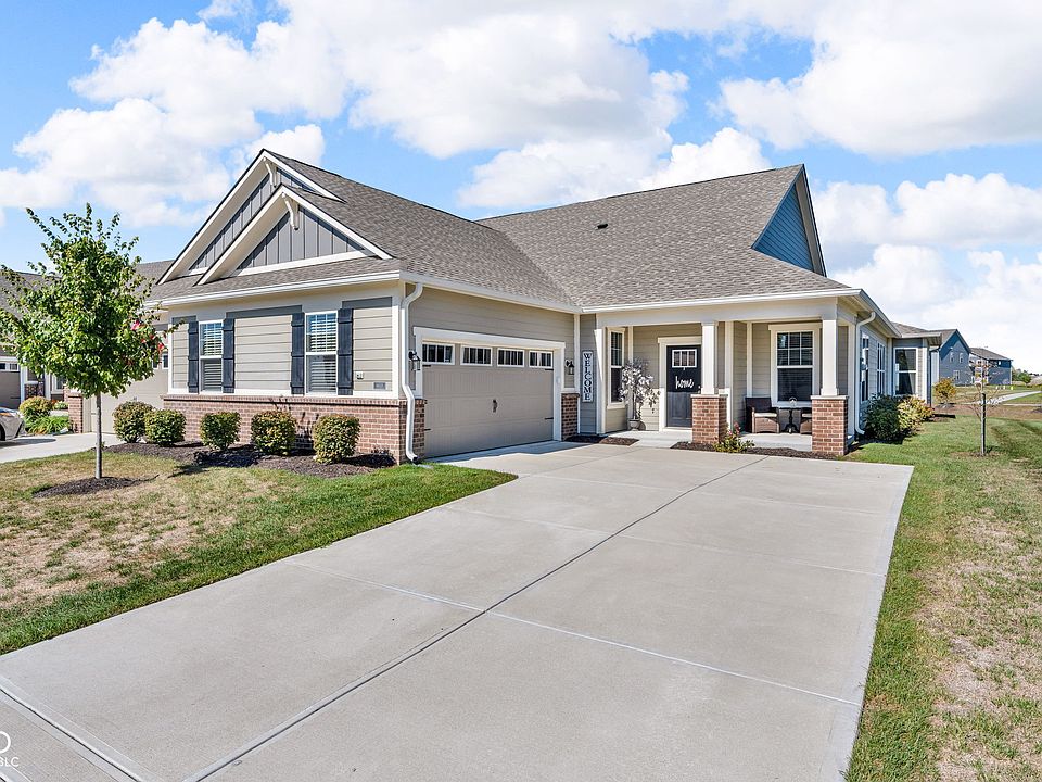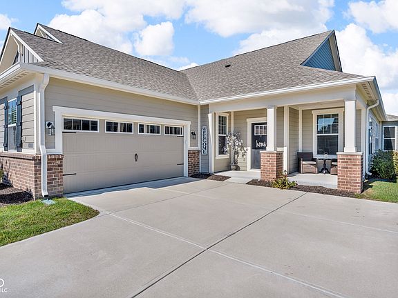 Welcome to this stunning 2022-built 2-bedroom, 2-bath condo in Brownsburg, offering the perfect blend of modern style and low-maintenance living. Every detail in this home has been thoughtfully designed for comfort, functionality, and beauty. Step inside to find an inviting open floor plan accented by beautiful modern lighting fixtures, crown molding, and elegant feature walls in both the primary bedroom and office. The gourmet kitchen features granite countertops, stainless appliances, and abundant cabinetry, ideal for both everyday living and entertaining. The spacious primary suite includes a walk-in closet with custom organization cabinets, double sinks and luxury tile shower in the ensuite bathroom, and direct access to the laundry area. The second bedroom offers versatility for guests or family, while the dedicated office-featuring its own stylish accent wall and French doors -provides the ideal space for working from home. The sun room provides a cozy area for watching tv, reading, or visiting with friends. Enjoy cozy evenings by the gas fireplace, relax outdoors on the covered front porch or enjoy the peaceful view of the pond with its tranquil fountain on the back porch. Additional highlights include a custom mudroom bench with hooks, a laundry room with a sink, vanity, and built-in cabinetry, and impeccable finishes throughout. The neighborhood offers a community pool, walking trails and direct access to the B&O Trail System. Simply move in and enjoy the comfort, beauty, and ease this exceptional home provides.