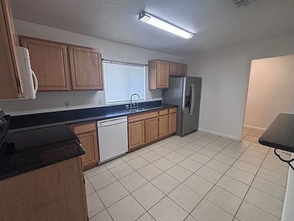 3 bedroom, 2 bath single family home in the Southport community near Orlando International Airport. Updated home includes ceramic tile throughout, all new doors, mirrored closet doors and granite countertops! Freshly painted inside and out and includes lawn care! Home boasts a large screen porch and vinyl fenced in yard! Don't wait on this one! Community pool and playground.