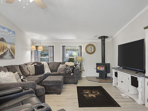 Welcome home to this nicely updated 1652 sqft 3 bedroom 2 bath vaulted ceiling home in an idyllic setting! The rooms are filled with natural light from the many windows and skylights, while the 40 foot wide covered wood deck and raised garden beds enjoy the backdrop view and privacy of the Wetland Conservation. Updated with granite countertops, recently painted and light gray vinyl plank flooring; this sale includes a charming 8 x 10 she-shed with lighting, opening wood framed windows, and a large loft with moveable ladder. The A-frame shaped shed has a small deck and cedar siding, and would also make a fantastic art studio, or really cool play house. The spacious primary suite is vaulted, has multiple closets, an on-suite bath with skylight and large jetted tub! Enjoy the DEQ certified wood burning stove while relaxing in the vaulted living-room, or adjoining dining-room with bay windows. New roof in 2020, newer remodel includes new windows, siding, flooring, interior and exterior painting, all completed approximately 2019-2020. Call listing broker for additional information about kitchen appliances and for financing recommendations.