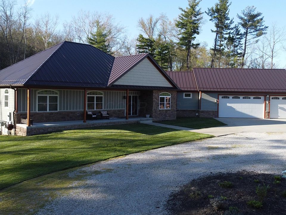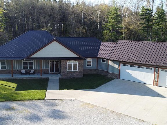 Beautiful multi-generational home, on a private 7.14 acres abundant trees and rolling stream to overlook from the 736 sq ft deck with gas grill hookup. The full walkout basement offers a full mother-in-law suite with full kitchen, living room, bedroom/full bath, 1/2 bath, laundry, and full turf rec room. Walkout basement to a custom stamped concrete patio with built-in firepit equipt with gas starter. The loft above the three-car attached garage is the complete with the third living space of a kitchenette, full bath, and bedroom/living room area. The main home offers four bedrooms, 2.1 baths with abundant light and breathtaking views of the treed rear yard. Whole house generator, Agent owned