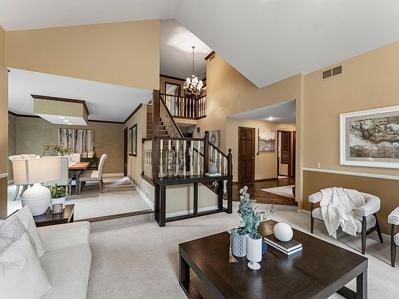 The walkout lower level offers a cozy family room with fireplace, rec area with wet bar, exercise room, and guest suite. Outside, enjoy a two-tiered deck, fenced yard, firepit, and mature landscaping. An oversized three-car garage with floor-to-ceiling storage completes this exceptional home surrounded by parks, trails, and serene natural beauty.