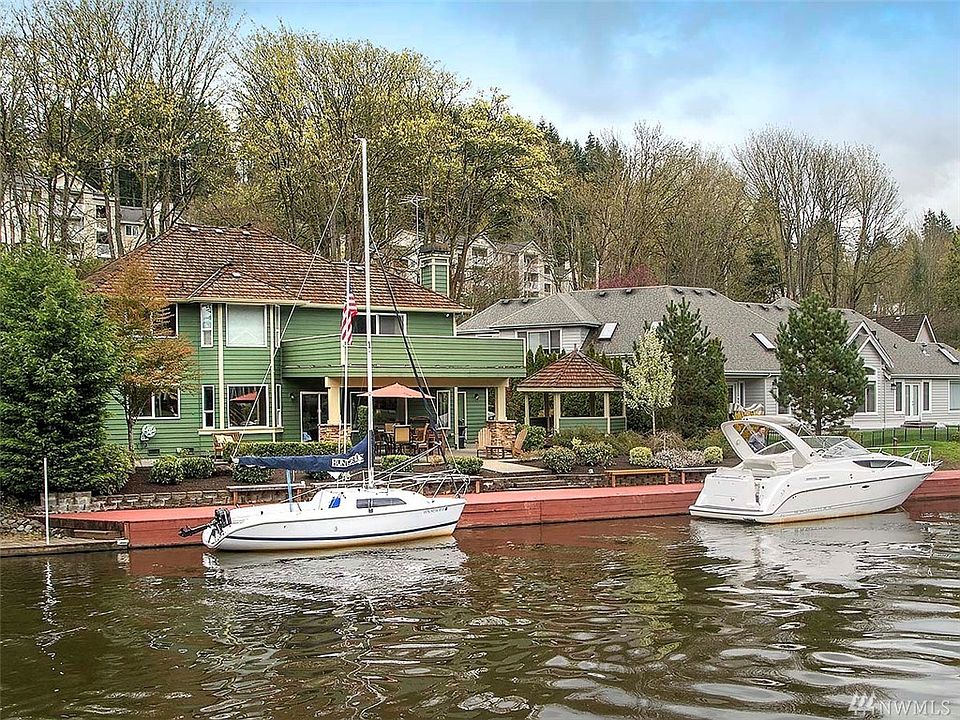 Rare 100 ft of waterfront in the heart of Kenmore! Large private dock on the Sammamish River, just a short cruise to Lake Washington. Immaculately maintained 2,980 sq ft home has 4 bed + den & sits on a sunny 14,379 sq ft lot. Chef's kitchen w/ stainless steel appliances & granite slab counters. Two gas fireplaces & hardwoods thru-out the upper level. Central AC. Fully finished 3 car garage + RV/boat parking. Enjoy views from the covered patio & gazebo. Just steps to the Burke Gilman Trail.