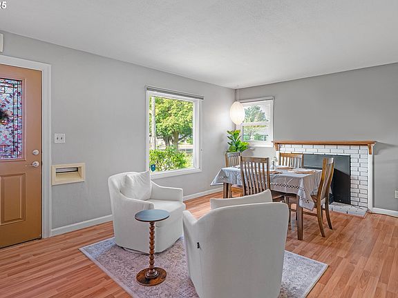 Just re-staged to inspire your imagination! This front entry room easily adapts— fit in a large dining table, or cozy up on the couch! Versatility is key in this thoughtfully designed 3-bedroom, 2-bath ranch home. From the moment you step inside, the cozy living room welcomes you with a classic fireplace and an easy flow into the kitchen, where stainless steel appliances and smart layout make everyday living feel effortless. A door off the kitchen leads to a truly special backyard: a covered deck perfect for year-round entertaining, an inground fire pit for long summer evenings, and a shed for all your storage or hobby needs. Two light-filled bedrooms and a full bath are conveniently located on the main floor, while the lower level opens up a whole new world of possibilities. Downstairs you’ll find a spacious second living area, a dedicated laundry room, and a flex space that’s ready to adapt to your lifestyle—home gym, creative studio, office, formal dining room or all the above. The private primary suite is tucked away here as well, offering a peaceful retreat with its own en suite bathroom. With a one-car garage and additional carport, an ideal layout for both everyday living and hosting, and outdoor spaces that feel like your own little sanctuary, this home is truly one of a kind—full of warmth, character, and potential. [Home Energy Score = 8. HES Report at https://rpt.greenbuildingregistry.com/hes/OR10239362]