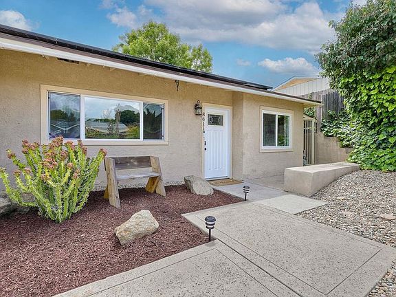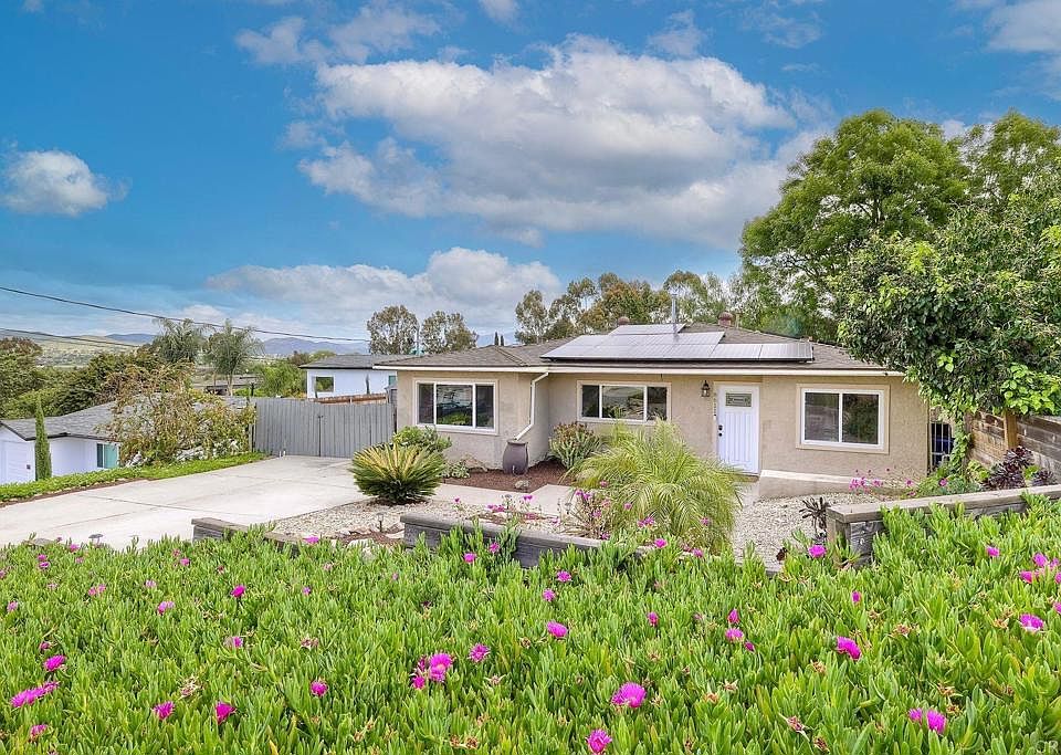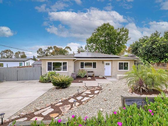 Welcome to your prime starter home nestled in a premier location. This charming single-story home boasts pride of ownership with a well-maintained interior and exterior, established landscaping, and thoughtful updates throughout. Step inside to a bright, open floor plan filled with natural light—perfect for both daily living and entertaining. The spacious kitchen features a convenient serving window that opens to the living room, creating a seamless connection for hosting and family gatherings. Unwind in the expansive primary bedroom, offering ample space to make it your personal retreat. Step outside to your fully fenced backyard oasis—complete with a recently resurfaced pool, fruit trees, grilling area, and picturesque views of Santee and the surrounding mountains. The home includes updated bathrooms, major appliances, and 29 solar panels with a low-cost lease to help reduce utility bills. A recently replaced HVAC system ensures comfort during the hot Santee summers. No HOA! Home is located 5 minutes from the 125 Freeway with quick access to the 8, 52 and 67. Close proximity to Santee Lakes, Cowles Mountain hiking trails, and Santee Sportsplex. All appliances remain, including washer and dryer, water filtration system, storage sheds and pool equipment. Don't miss your opportunity to own this move-in ready gem in a sought-after community!