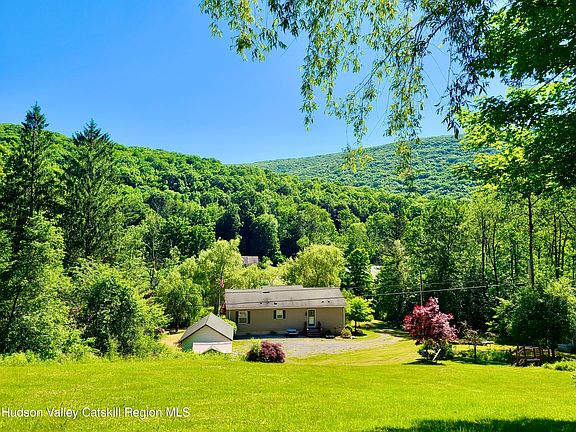 A lovingly maintained 3 bedroom ranch home on a FULL FOUNDATION with MOUNTAIN VIEWS and a STREAM crossing through, under 4 miles from BELLEAYRE SKI CENTER! The home is set far back from the road, adding privacy to the 8.9 acres with carefully landscaped scenery providing a PARK-LIKE setting in the yard, as well as a few WOODED ACRES complete with ATV trails. During the winter, spend the days skiing at Belleayre just a few minutes away, then come back to warm up by the FIREPLACE. In the warm weather you can enjoy the mountain scenery, hike or ride the trails, and fish or swim in the stream without ever leaving the property! With over 8 foot ceilings in the full basement, there is plenty of room for projects and storage, or even the potential for additional finished space. There is more storage in the multiple sheds placed around the property. And there is plenty of other hiking, biking, fishing, kayaking, golf, farmer's markets, restaurants, and more all close by, plus wonderful local villages like Phoenicia, Pine Hill, Roxbury, and Margaretville. Only 2 hours from the GWB. Your Catskill Dream is waiting!