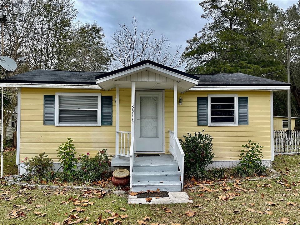 Cute little house backs up to manmade pond and sits on a .45 acre lot. Great investment property or first time home buyer. Large yard area for parking RV or boat. Lots of parking located on the side of the property in a parking area. Quick and easy access to SR 200 and I-95 if you are a commuter. Property is being sold AS-IS. Cash sale only. Laundry area hookups are located in a small side area of the back porch. Two outbuildings are located on the property; the smaller one right outside back entrance is in good shape. However, the larger storage building to the right side of the property needs to be demolished/removed. Property needs a new septic & drain field as seller was told the drain field was failing.