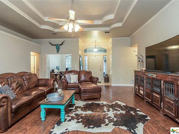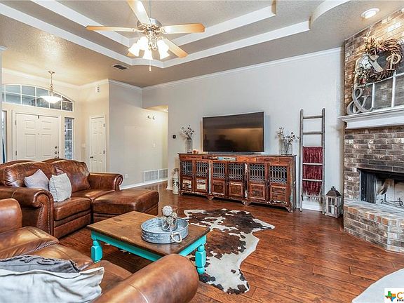 This outstanding three bedroom, two bath home is located in the popular Carriage House subdivision in the Belton School District. The kitchen features granite counter tops, beautiful cabinetry and stainless steel appliances. The spacious living room has a corner brick fireplace with wood laminate flooring and crown molding. The separate office space provides a great work area. The large master bedroom with en suite bath has dual vanities, separate shower and garden tub. The backyard has a covered patio and privacy wood fencing as well as a storage building. Brand new A/C System! Neighborhood amenities include nearby community pool and playground!