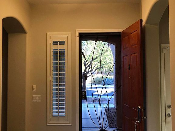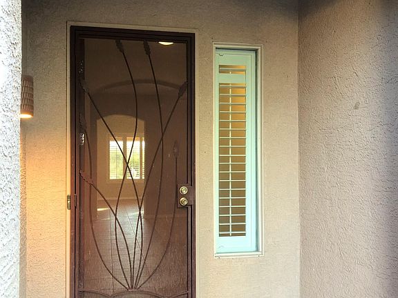 Large trees in front to welcome you home! Beautiful desert rod iron security door at entry with views all the way to the backyard. 4bedroom, 2 1/2 bathroom house with split floor plan, front formal living and dining area and high ceilings for spacious feel. Large kitchen with open concept overlooking backyard, family area, and cozy fireplace, with breakfast bar-perfect for entertaining while enjoying time in the kitchen. Large covered back patio with views of natural common area for added privacy. 3 car tandem garage with utility sink. Call today!