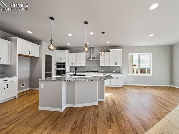 READY NOW! Quick Move in Home in Wolf Ranch on West backing homesite close to the Wolf Ranch Rec Center and Pool. Discover the Seabrook, an open-concept ranch design that offers flexibility for any lifestyle. The main level boasts a primary bedroom suite complete with a luxurious 5-piece bath featuring a free-standing soaking tub, mudset shower, and a spacious walk-in closet. The heart of the home is the expansive great room and dining area, perfect for family gatherings, which also walks out to the oversized covered patio to enjoy the afternoon sunlight. The gourmet kitchen is a chef's delight, with a walk-in pantry and large kitchen island. An additional bedroom, full hall bath, and laundry room complete the main level. The 9-foot finished basement adds two more bedrooms, a 3/4 bath, a large recreation room with a wet bar, and an unfinished area with rough-in plumbing for a future suite. This home also features a 3-car garage, a majestic stone fireplace, 8-foot garage doors, extended hardwood flooring, a laundry base cabinet with a sink, extra windows for added light, a boot bench, and exquisite finishes throughout. All measurements and sq. footages are approximate and may vary. Taxes are based off of land only and will go up once the home is assessed.