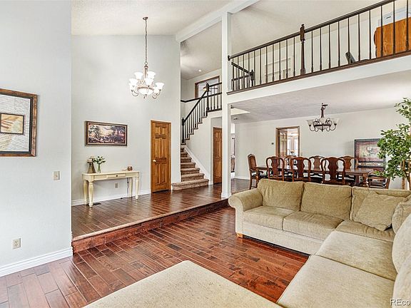 This well cared for 4 bedroom, 4 bath, 2 story home features a remodeled kitchen with brand new quartz counters, engineered hand scraped hardwood floors, newer cabinets, stainless steel appliances, an island and eat-in space. Situated on a quiet street close to Sand Creek Elementary School and Foothills Trail (of the Highlands Ranch Open Space trail system), you’ll enjoy those cool autumn nights relaxing on the oversized, two tiered deck surrounded by mature trees. Back inside you’ll find a spacious main floor with the aforementioned kitchen, a vaulted entry/foyer, formal living and dining rooms, a great family room with gas fireplace, a powder room/half bath, and the laundry/mud room. Upstairs has the vaulted primary bedroom with remodeled en suite five piece bath w/jetted tub, dual sinks and two large closets. Two more bedrooms, a full bath, and a loft study area round out the upper level. The 75% finished basement has a large rec. room, another large bedroom, a 3/4 bath, the utility/storage room and extra storage in the crawl space. Close to schools, parks, trails, shopping, dining, entertainment… close to perfect! Come see this one today!