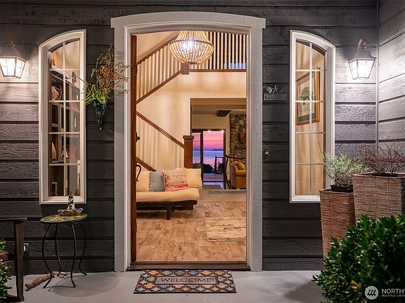 Beautiful 3/4 acre private waterfront home, high bank a few feet from the 49th Parallel. Furnished in a comfy casual Decor , Pacific Northwest with a Native American touch . Square footage is 2200 with 900'of outdoor decking , all glass for unobstructed view!