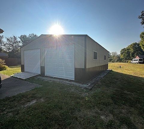 WELCOME TO BETHANY FARMS SUBDIVISION CHARLESTOWN.....This large home is in the hot spot of all the good amenities within minutes, I-265 within 5 minutes, and very easy access to the Louisville metro Area via Kennedy or East End Bridge..... This very well maintained home offers so much..... over 2000 finished square feet, TWO CAR ATTCHED, TWO CAR DETACHED GARAGE 24 X 28 BUILT IN 2022, INGROUND SALT WATER POOL WITH FENCED PRIVACY, COVERED PATIO AND LARGE ENTERTAINING AREA FOR ALL YOUR QUESTS. The brick & vinyl home has three bedrooms, two full & 1 half bath, fireplace, wet bar, all stainless appliances remain including washer & dryer. The HVAC were new in 2023. Pool all updated in 2022. This location is top of the list and located on 1.04 landscaped acres. Shown by appointment only.