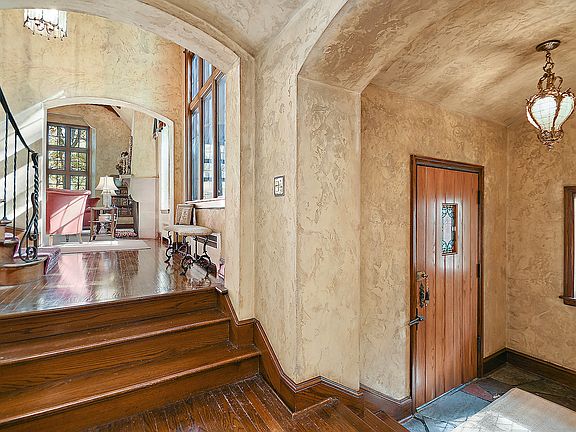 A dream begun in 1931, with its completion in 1935, by noted Chicago architects John T. and Murray Hetherington. This masterpiece is one of Palos Park's finest examples of French Eclectic style. A formal and elegant look with its steeply pitched roof with flared eaves, stone and brick finishes, casement windows, and stately door, this home is as refreshing as the "Kool Aid Mansion" nick name it has affectionately been dubbed, referring to its previous owner and Kool Aid Inventor's family Ivan and Edwin Perkins. Equally historic in design, Marshall Field's Decorators oversaw much of the interiors including the venetian plastered finished walls on most of the first floor. Adhering to their motto, "Give the lady what she wants," it was the perfect pairing to the spectacular craftsmanship of this residence. Soaring ceilings with original beams and oak flooring, natural carved stone wood burning fireplace, and bronze banisters. The owners have meticulously honored the rich preservation of this estate as noted on their registered historical plaque upon entry. As solid as it is stunning, this "fireproof" home is built with all steel joists and beams and is doubled bricked. Still plenty of "new" with replaced roof, copper flashing, and copper plumbing throughout. Set upon a wooded 1+ acre lot with stone drive and walk thru pergola to balcony and patio. One of Illinois top rated grade schools, Lake Michigan water and public sewers. Breathtaking and timeless for sure, yet convenient to shopping, dining and another sweet icon, Palos Park's Plush Horse Ice Cream Parlor. A home cherished by its previous owners and ready for a new forever family and the next chapter.