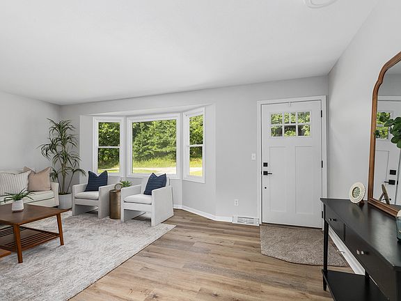 Welcome home to this stunning 3 bed, 2 bath ranch in sought after Ada Township! This home seamlessly blends modern sophistication with cozy charm. Fully updated kitchen features stainless steel appliances, gorgeous countertops, a double sink, & cozy eating area overlooking the serene wooded lot. Enjoy gleaming updated flooring & brightly renovated bathrooms. Windows throughout flood the interior with natural light. The lower level boasts a finished family room with a fireplace, full bath, & laundry room. Through various access points, step outside to a secluded oasis with a spacious deck overlooking the expansive 1.44-acre lot. A large pole barn with loft access adds plenty of extra storage space. New AC and furnace (Aug 2023). Don't miss the chance to call this gorgeous ranch home!
