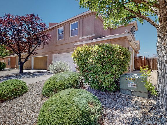 Welcome to this stunning Albuquerque Townhouse! Nestled in a peaceful residential area, this 3 Bedroom 3 Bathroom home is the perfect place to make your own. As soon as you go up the stairs, you will be taken aback by the beautiful laminate flooring and tall baseboards that fill each room. The main living space is illuminated by natural light and features a cozy gas fireplace - perfect for creating an atmosphere of relaxation on chilly nights. The kitchen has plenty of countertop and cupboard space for all your culinary needs. Just off the kitchen is access to your backyard paradise, ready for you to create whatever kind of garden or outdoor oasis you can imagine! The two car garage provides ample storage space and convenience when parking vehicles, bikes, or any other recreational