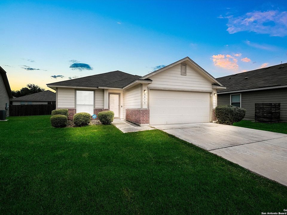 Welcome Home to Escondido Meadows! Discover this charming single-story gem nestled in the sought-after neighborhood of Escondido Meadows! From the moment you arrive, you'll be greeted by impressive curb appeal, a spacious two-car garage, and a prime location on a peaceful cul-de-sac. Step inside and fall in love with the beautifully updated chef's kitchen, featuring granite countertops, double sinks with a sleek gooseneck faucet, and a gas range-perfect for cooking up your favorite meals. The open-concept layout boasts soaring 9-foot vaulted ceilings and distinct spaces for dining, entertaining, and relaxing. The generous living area provides ample room for cozy nights in or lively gatherings with friends and family. Unwind after a long day in the serene backyard, where you can soak up the Texas sunshine or stargaze under the open sky while listening to the sounds of nature. This well-maintained home is move-in ready and filled with thoughtful updates: AC replaced in 2019. Roof replaced in 2017. Granite kitchen countertops, double sinks, gooseneck faucet, and garbage disposal updated in 2021. Microwave replaced in 2024. Garage door replaced in 2024. Stove and refrigerator convey with the home. Original carpet throughout. Washer and dryer do not convey. Conveniently located just minutes from Ft. Sam Houston, BAMC, and Randolph Air Force Base, with easy access to IH-10, Loop 410, and Loop 1604. Don't miss the opportunity to make this delightful home your own. Schedule your showing today and come see all the charm and value it has to offer!