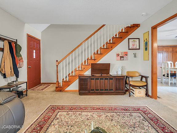Discover the charm of this beautiful story-and-a-half home nestled in the peaceful Lake Carmel Subdivision. From the moment you enter inside, you're welcomed by a cozy living room that flows seamlessly into a spacious eat-in kitchen, complete with a large island with seating, stainless steel appliances, and easy access to the attached two-car garage—a dream for unloading groceries with ease.