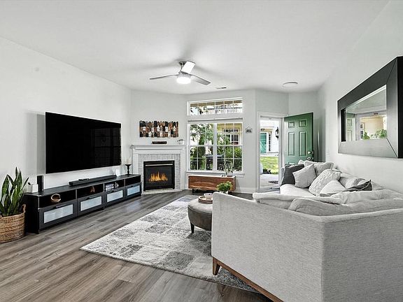 Spacious kitchenDining areaCozy gas fireplacePrivate patioIn-unit laundry