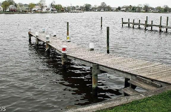 Enjoy the peaceful view of Chink Creek right by Bear Creek in a private-feeling community. Very well-maintained & insulated home w/60' x 6' pier, 56' front footage, & 9' bulkhead. Updates: roof ('12); sump pump ('11); kitchen ('10); furnace & water heater ('03); windows, doors, & gutter system. 2 ceiling fans, 2 window AC units, all appliances stay. Pellet stove in living room. Come see this today