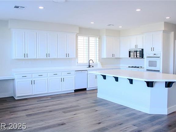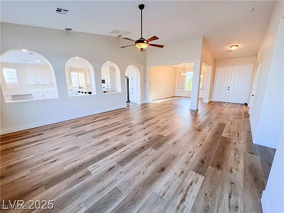 Beautifully remodeled, spacious single story home with DUAL PRIMARY SUITES! Luxury vinyl plank throughout. Very private backyard backing up to Floyd Lamb State Park with spectacular mountain views! Huge island kitchen with walk-in pantry. Large, separate laundry room. Plantation Shutters, ceiling fans and oiled brass fixtures throughout. Open floor plan concept with vaulted ceilings. Quiet, gated community.