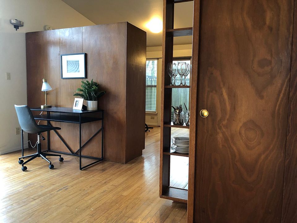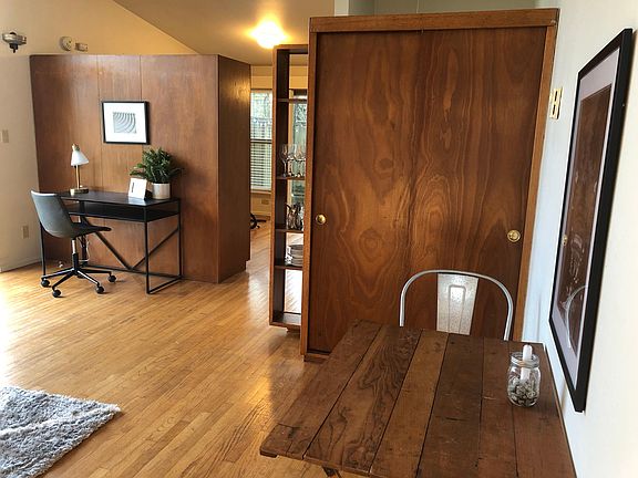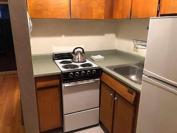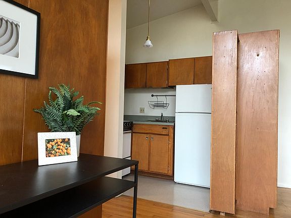 A Great Value and Location! FREE off-street parking. Mid-century character and charm. No one above or below. Only one shared wall. High ceilings give a spacious feel to this 475 sf unit. - small owner-managed complex - end unit - private walled, brick patio - hardwood floors - vaulted ceilings and skylight - private entrance off courtyard garden - one bedroom studio with wall divider no door - single story - great neighbors - free off-street parking - walk to buses - easy access to I-5, Downtown, University of Washington, Northgate - 3 mile bike ride to UW; Straight shot, no steep hills, surface streets - on-site laundry - non-smoking Available April 1. Located in Maple Leaf / Ravenna area: north of 85th between Lake City Way and 15th Ave NE. Please call 206-478-6320 to discuss or set appointment. No pets please. NOTE: Pictures are accurate representations of unit, but may be taken from a different like-kind unit. There may be minor differences in bath fixture colors, counter tops or vinyl flooring in bath and kitchen. All units are the same layouts, have hardwood floors, vaulted ceilings, skylights, etc. University of Washington, UW, Greenlake, Northgate NE Seattle, South Lake Union, Boeing, buses, bike, Roosevelt, Maple Leaf, Ravenna, free parking, Whole Foods, Children s Hospital, University of Washington Hospital, North Seattle Community College, Northgate Mall. Applicants must show a monthly income three times rent and have excellent rental references and credit scores. Tenant pays for utilities. WSG is flat $50/mo. Last month deposit required, payments accepted. All but $119 cleaning fee is refundable on Security Deposit.
