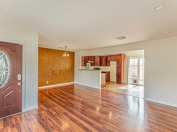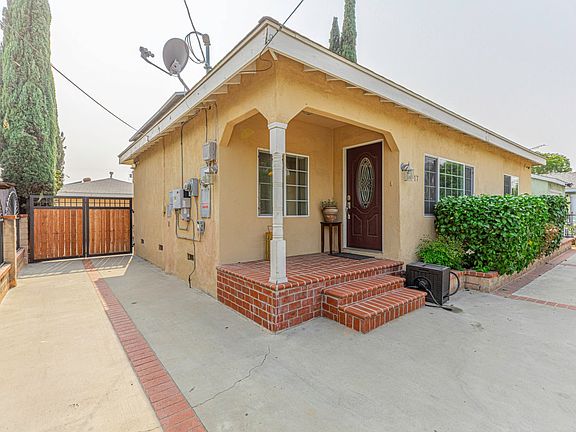 Two charming homes for sale on fully fenced lot, front house offers 3 bedroom, 2-bathroom, and a back house/ADU with 2 bedroom and 1 bath! With an open front porch beckoning you inside to the main home, welcome to a bright living room warm laminate floors throughout to provide a comfortable space for your entertaining needs. Through the dining room, find a spacious kitchen with granite counters, built-in stainless-steel appliances, ample cabinetry, and a large bar top/passthrough window space into the living room. Down the hallway, find the main bathroom and each bedroom enhanced by a built-in closet storage with mirrored doors and nice sized French windows. The primary bedroom features an en-suite bathroom with a shower/tub combination and a granite vanity sink. Outside is a spacious patio area, an open outdoor kitchen, and a beautiful sparkling pool to relax by. With a separate entrance and separate address, the second home is a lovely 756-sqft ADU is complete with tile floors throughout, a full bathroom, and a kitchen with plenty of cabinets, laminate floors and built-in closets with mirrored doors. Additionally, this great property features paid off solar panels, Nearby local restaurants, cafes, businesses, parks, and easy access to the 5 Freeway! Amazing opportunity for an investor or live in and rent the other unit!