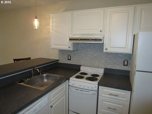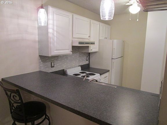Cute remodeled studio condo in great location. Remodeled kitchen features white cabinets, full tile backsplash, eating bar, pantry. Updated bathroom with newly tiled shower. Living rm has bright windows, laminate wood flrs, ceiling fan, private deck. Gated complex tucked away among trees yet walking distance to Target, Wash Sq., restaurants. Carport parking, large separate storage, swimming pool and more. Low HOA fees and taxes!