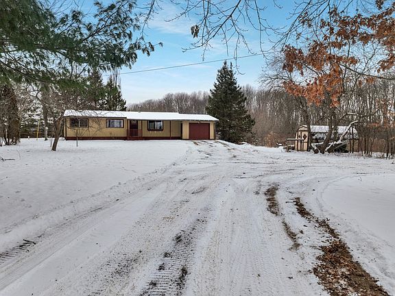 This home sits on 5 private acres just a few miles outside of Chetek in the Chetek School District; offering the perfect blend of peaceful country living while having easy access to town. Enjoy stunning countryside views from the huge deck off the kitchen, creating an ideal space for relaxing or entertaining. The single-level layout features an open kitchen/living area with 4 bedrooms, a renovated bathroom w/ laundry; all in the convenience of the main level. Throughout the property, you'll find a couple of sheds and two three-sided sheds, ready for your imagination—whether for storage, rehab, or your favorite hobby! Recent updates, including a new roof, water heater, and furnace, provide added peace of mind. The spacious, unfinished basement offers ample storage or the opportunity to create additional living space. With endless potential, this home is ready for your personal touch!