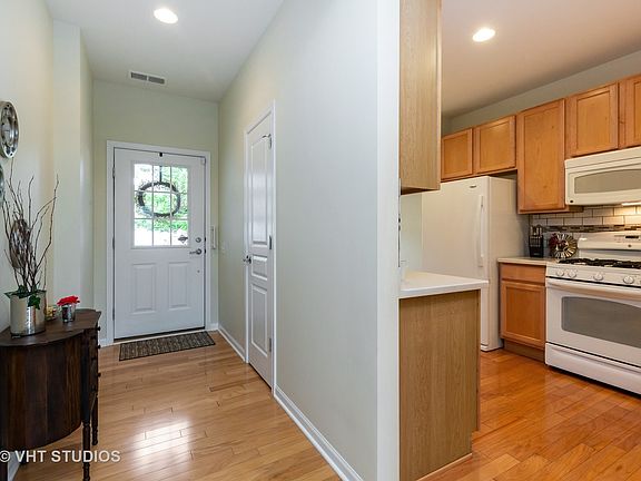 Beautiful "Monroe" model with PREMIUM BERM LOT! This home has an Eat-in Kitchen with a Breakfast Room to front of home. Hardwood floors in Kitchen, Foyer and Dining Room. Kitchen has 42" cabinets, corian counters, and newer backsplash.Large patio overlooking the large grassy private yard. No homes behind! Edgewater by Del Webb is a "Lifestyle" over 55+ community. One person living in the house needs to be 55+.Edgewater takes care of grass and snow, is a 24/7 gated community, has a beautiful Creekside Lodge with an indoor pool and hot tub and outdoor pool, tennis courts and bocce courts.