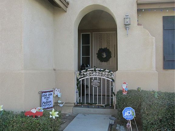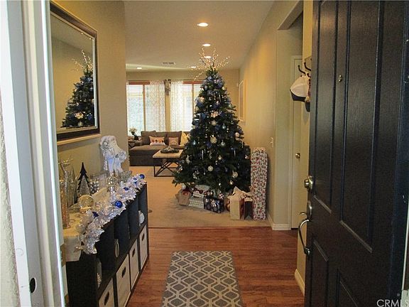 Great home located in the desirable Park Hill area in San Jacinto. This spacious 3 bedroom/2 bath home boasts high ceilings and has expansive side and rear yards (possible RV/boat parking on side) The high ceilings and picturesque windows provide ample natural light and an open-air feeling in the great/living room. Wood flooring in nice foyer entry, hallway, and kitchen. Newer ceiling fans, microwave, disposal, and kitchen faucet. Carpeted bedrooms and living room. Recessed LED lights with dimmer for your mood lighting while sitting in front of the cozy fireplace. Access to the rear yard is provided via large sliding doors in the master bedroom and dining area, which lead to a huge permitted concrete and Alumawood patio measuring approximately 20x50 feet! The patio has 2 huge ceiling fans to help keep you cooler during the summer BBQ! Huge master bedroom with large walk-in closet. The 1st bedroom currently used as an office and the 2nd bedroom has built-in shelves and extra clothes rods. 2 car attached garage with direct access to home. Secure, quiet, and friendly Park Hill neighborhood with low HOA. Plenty of room to schedule your next family gathering! Storage shed remains with the home, as does the current security system (minus cameras). Buyer to re-activate with the current security monitoring company if so desired.