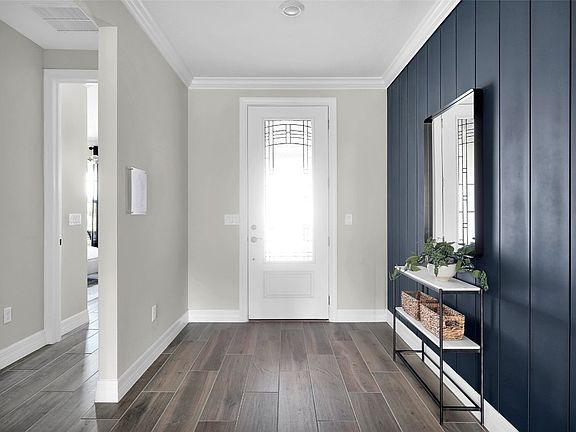 Experience the Renown floorplan with a stunning Coastal Elevation, thoughtfully designed with an Open-Concept layout that effortlessly connects indoor living with outdoor relaxation. Luxury Vinyl Plank flooring extends throughout the main living spaces, guiding you to your private Covered Lanai. At the center of the home is an upgraded Gourmet Kitchen, featuring elegant white Cabinetry, Quartz Countertops, and top-of-the-line Whirlpool Appliances along with a KitchenAid Refrigerator. Unwind in the spacious Owner's Suite, complete with a spa-inspired en-suite Bathroom boasting dual Quartz Vanities, a large Walk-In Shower, and two generous Walk-In Closets. Additional enhancements include upper Cabinetry in the Laundry Room for added storage and convenience. Other highlights include a Washer and Dryer, Window Blinds, and a Smart Home package. Situated on a pie-shaped lot overlooking a serene wooded preserve. Embrace the lifestyle you deserve at Del Webb Wildlight.