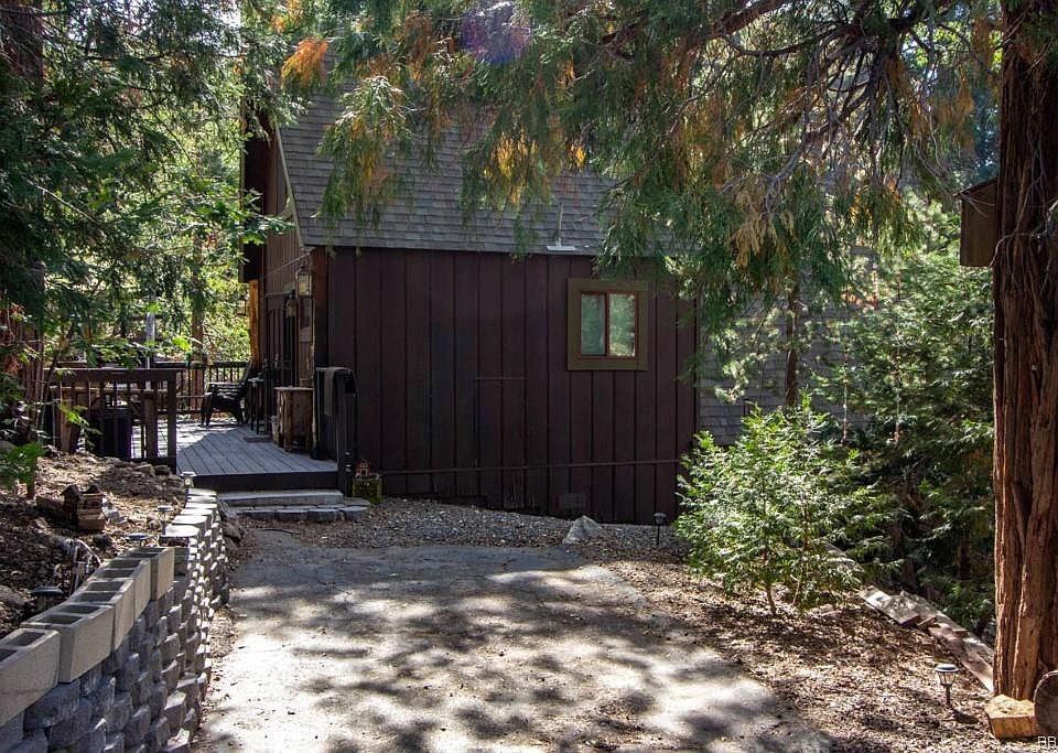 This rustic mountain A-frame on Golf Course Road is a quaint 2-bedroom, 2-bathroom house waiting for you to make memories. This quintessential mountain retreat is for experiencing all four seasons. The natural wood tones pop as you enter the house providing a warmth that compliments this style of home. Tongue and groove walls and ceilings with exposed wood beams provide a cabin-like feel. The entry-level has one bedroom, one bathroom, kitchen, dining, and living room areas. The kitchen has been updated with granite countertops and a stainless-steel sink. Clear sight lines open the kitchen to the living room and dining areas making the space feel even larger. The living room features a large wood-burning fireplace making the space relaxing, cozy and warm. The living room has access to the deck. The natural light shines into the space through a sky full of windows. The bedroom loft overlooks the living room space and takes advantage of the windows that let you wake up to the beautiful trees outside your door. The loft has a second bathroom giving you privacy and convenience, This home is a short drive to the Lake Arrowhead Country Club and to premier outdoor shopping at the Lake Arrowhead village, and within driving distance of many outdoor activities at one of four mountain lakes, or 3 ski resorts the San Bernardino mountains have to offer. The seller over the years has done many upgrades to this charming cabin.OH! Yes you do have lake rights. Come up to look for yourself.
