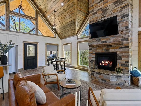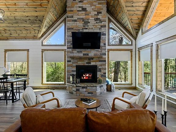 "Summer of 69" cabin is a thoughtfully designed cabin located in the natural setting of Broken Bow, Oklahoma, offering a strong blend of rustic style and modern functionality. This one-bedroom, one-bathroom property features an open-concept floor plan with warm wood finishes, vaulted ceilings and quality materials throughout. The living, kitchen and dining areas are efficiently arranged to maximize space and comfort, while large windows provide abundant natural light and views of the surrounding landscape.