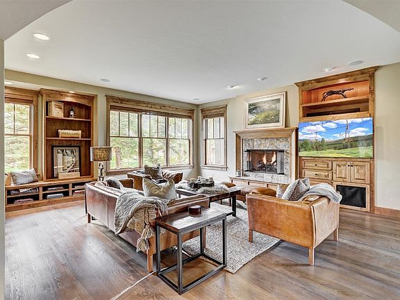 Presenting an exceptional home in Keystone Ranch, skillfully constructed by renowned builder Travis Construction. This furnished retreat offers a serene ambiance, bordering open space and National Forest, with awe-inspiring mountain views. Impeccable finishes adorn this residence, ensuring a refined aesthetic throughout. Enjoy the warmth of three fireplaces, utilize the practicality of a stylish office, and discover a hidden room behind a bookshelf wall, complete with a wet bar and pool table—a perfect hangout space for entertaining and watching the "game". The four-car garage accommodates your mountain lifestyle essentials effortlessly. Additionally, residents gain access to the Ranch restaurant, pool, hot tub, and golf course. Experience the best of Keystone's West Ranch in this remarkable dwelling.