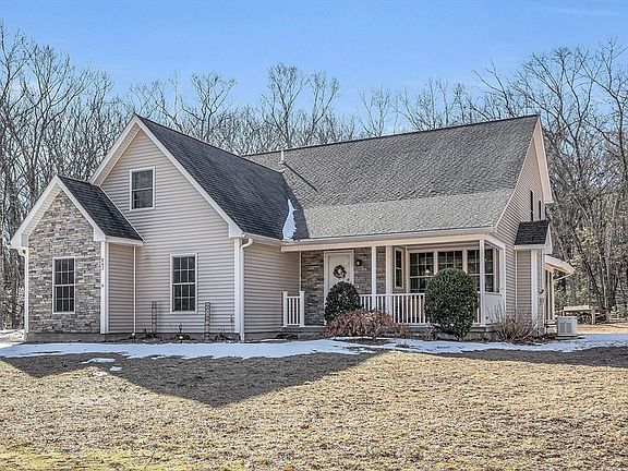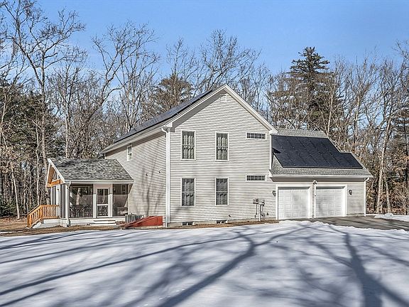 Welcome to this stunning contemporary cape nestled in a serene location. As you step inside, you're greeted by the warmth of hickory wood flooring that flows throughout the main level, offering both durability and charm. The heart of this home is its open concept kitchen, adorned with granite countertops and sleek appliances, inviting culinary creativity and gatherings with loved ones. The spacious layout seamlessly transitions into the living and dining areas, perfect for entertaining or cozy nights sitting by the gas fireplace. The first floor boasts a luxurious main bedroom retreat complete with a private bath. Convenience is key with first floor laundry facilities, making household chores a breeze. Step outside to discover a sprawling screened porch, offering an ideal spot for morning coffee or alfresco dining while overlooking the expansive yard. Upstairs, you'll find 3 versatile bedrooms, w/ 2 more baths. Shed, seller owned solar and 2 car garage.