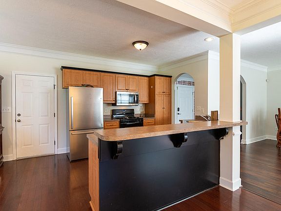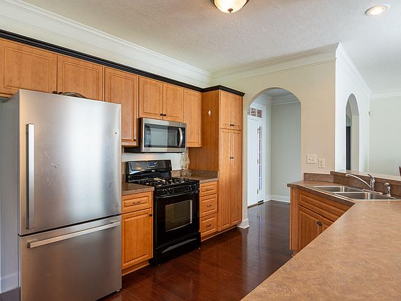 This Beautiful all brick home features 4 Bedrooms and 3 full baths on 1/3 of an acre that backs up to green space. The open concept floor plan for the Great Room, Kitchen and Dining Room is perfect for entertaining family and friends. This home offers a split bedroom plan with the primary bedroom on one side of the home and 2 other bedrooms and a full bath on the other side of the home! There is a Fourth bedroom upstairs with a full bath as well. A rocking chair back porch overlooks a large fenced back yard.