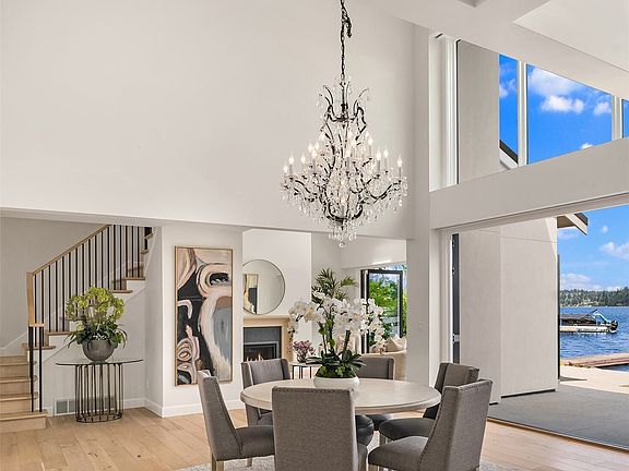 A rare opportunity at this custom, newly constructed waterfront jewel on a level lot. Enjoy year-round deep-water moorage for a yacht, smaller boats & water toys along the 65 feet lakefront. A manicured lawn leads to a sandy beach in a serene bay, perfect for wading into the calm water that reaches more than 10 feet deep at the end of the dock. The residence masterfully combines timeless design with contemporary elevated style. Expansive floor-to-ceiling windows frame panoramas, as light-filled living spaces showcase the designer finishes. The versatile floor plan adapts to every need. Relax and enjoy your morning coffee or evening wine on the generous deck. Located on North Island, offering easy access to both Seattle and Bellevue.