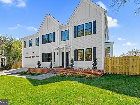 This stunning brand new home, designed and built by Red & Friends LLC and Duren Projects LLC, features five bedrooms, four and a half bathrooms. With 5,300 square feet of finished living space, this home boasts hardwood floors throughout the first and second floors, recessed lighting, beautiful design details, and oversized windows with ample natural light entering the home. The main level highlights a spacious open floor plan with a great flow throughout for everyday living and entertaining with an oversized gourmet kitchen with a center island, high-end stainless steel appliances, quartz countertops, polished marble tile backsplash and is open to the casual dining area and large family room with a quartz gas fireplace and access to the patio and yard. This level also features a welcoming foyer, formal dining room, a sun-filled formal living, powder bathroom, private office with a side door leading to the yard, and a mud room with built-in cubbies and a bench (conveniently located off the attached two-car garage). On the second floor, you will find the luxurious primary suite, complete with dual walk-in closets, and a spa-like ensuite bathroom with a large walk-in shower, soaking tub, and dual vanities. This level also features a loft, three additional bedrooms, two bathrooms, and a conveniently located laundry room. The oversized finished basement is ideal for both hosting and entertaining, offering an oversized recreation room complete with a bar, an exercise room, an additional bedroom, full bathroom, and ample space for storage. Completing this home is the attached two-car garage with wiring for an electric car charger. The professionally landscaped exterior serves as an extension of the home, including a flagstone patio and two flat fenced-in yards. Located in Hillmead, this home is within walking distance to restaurants, shops, and Hillmead Park, as well as in close proximity to downtown Bethesda, Metro, and major commuter routes.