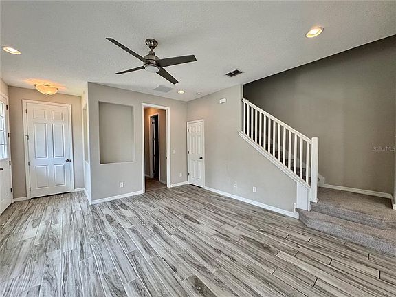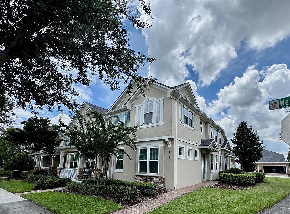 Beautiful townhome in Windermere Trails with first floor master bedroom. Excellent location - walking distance to Bay Lake Elementary, as well as shopping and dining. This well maintained unit offers 3 bedrooms (master down with 2 closets) and two bedrooms with full bath, bonus/loft area and laundry located on the second floor. Tastefully decorated throughout with gray and white accents. Kitchen has stainless appliances, white shaker style cabinets and quartz countertops. Two car detached garage with patio and covered walkway. Community swimming pool and much more. Zoned for Bay Lake Elementary, Horizon West Middle and Windermere High schools. Close to dining, shopping, tourist attractions and expressways.