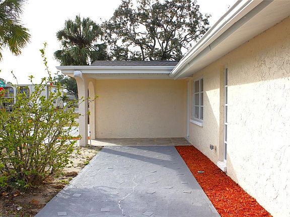 UPDATED BRIGHT HOME, CORNER LOT, WITH 3BR/2 BATH/2 CAR GARAGE, OFFICE/BONUS ROOM, BAR AREA AND RV OR BOAT PATH. An excellent location in a well-established family neighborhood. As you approach the home you will see the specious foyer, leading you to an elegant front door. Step into the house and see a generous living/ dining Room area, a perfect space for gatherings and entertaining guests. To your front it is the bonus/office room that gets you to the back enclose with windows Lanai, An ideal retreat just waiting for you with access to your RV or boat path and the backyard and to the left it is the beautiful kitchen with new cabinets, modern quartz countertops and backsplash, new stainless steel appliances, and next to it the bar and thrid bedroom and then an open dining room for delightful meals and celebrations. From the entrance to your right the updated guest bathroom with new shower tile top to bottom, a new modern shower fixture, and a new vanity with a quartz top. From the kitchen you access the garage recently painted flooring and good lighting enabling you to use the spaces as a man cave or playroom! And the second bathroom with new shower tiles, a new modern shower fixture, and a new vanity. The house contains LED lighting fixtures and exceptional ceramic tile flooring with 5" floor molding trim all over the house, a combination hard to find in a house today also Throughout the house are new 6-panel doors. Recently painted interior, exterior...And much more! The house is located at walking distance to shopping stores too! ROOF INSTALLED IN 2025, AC SYSTEM 2021, PUBLIC SEWER, NO HOA, NO CDD, NO FLOOD INSURANCE REQUIRED!! Come see it before it gets under contract !!