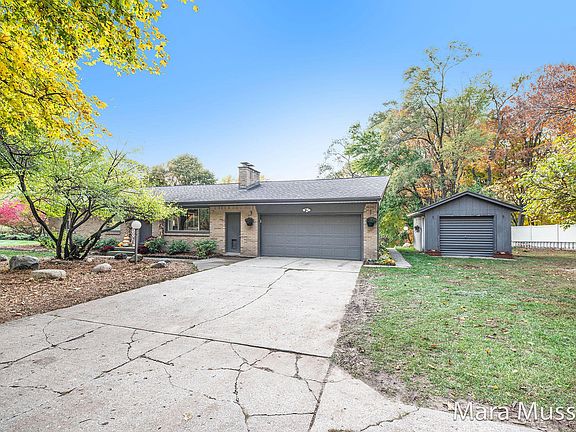 Renovated Byron Center Schools brick ranch on 1.96 acres of gorgeous property now available. This well loved 3 bed / 2 full bath home shows pride of ownership in the remodeling done. Many updates including furnace w/ humidifier and AC in 2019, redone bedrooms, kitchen with new appliances including a double wall oven, flooring throughout the mail level, solid core doors, barn doors, bathroom facelift, trim, wainscot, some replacement windows and new paint, to name a few. A large deck off the rear of the home offers a stunning view of the backyard. Downstairs you will find a large living room with another fireplace, full bathroom and laundry. The oversized garage and separate single stall storage shed will accommodate your cars and toys. Don't wait to schedule your private