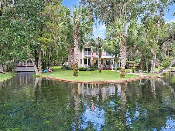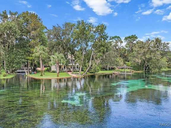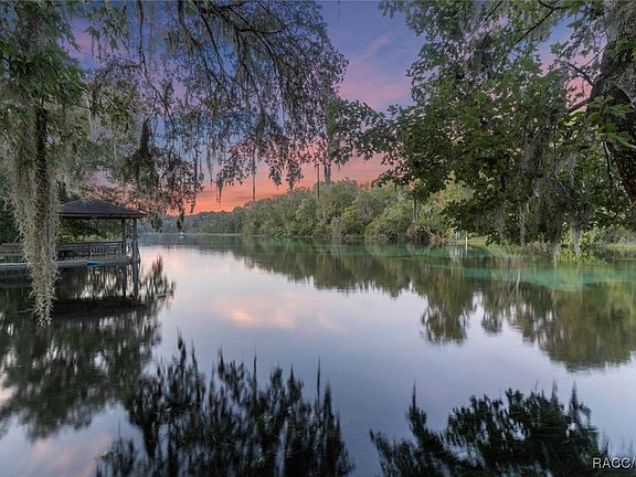 Location, location and definitely location. Premier property at Head Springs on Rainbow River; a retreat out of time. This home is exceptional with a deep blue spring in front of the property and your very own 100 foot canal for boating, docking and easy spring access. For your visitors, a separate 500 sqft guest house, 225 sqft TREX deck with full bath and kitchenette. New roof on Home and guest house 2024. The home was built 1987 and the entire interior of home was renovated 2016, Kitchen remodeled 2017. Bathrooms remodeled 2020. HVAC new in 2016. East side of the Rainbow River is State of Florida Property and is designated "FOREVER WILD." Comes fully furnished. Heavy Duty black chain link fence with sliding gate at the end of the driveway provides an added layer of security. Bring your swimsuit and toothbrush!