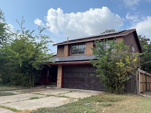 This two-story brick home offers a spacious floor plan ready for fun decorative ideas. The main level features an open-concept living and dining area With vaulted ceilings, exposed beams, and a brick fireplace as the focal point. The kitchen connects easily to the common areas, providing a functional flow for future redesign. The owner's retreat bedroom is conveniently located on the first floor with an en-suite bathroom and wall of windows overlooking the backyard. Even the bath vanity has a fantastic sunny window for natural lighting in the vanity area. Upstairs includes three additional bedrooms and a full hall bath offering ample space for family or guests. Exterior highlights include a two-car garage, mature trees and a generous yard with room for landscaping improvements. This property offers buyers great versatile with its floor plan. This home is close to Westpark Tollway and other major roadways to entertainment, employment center & shopping.